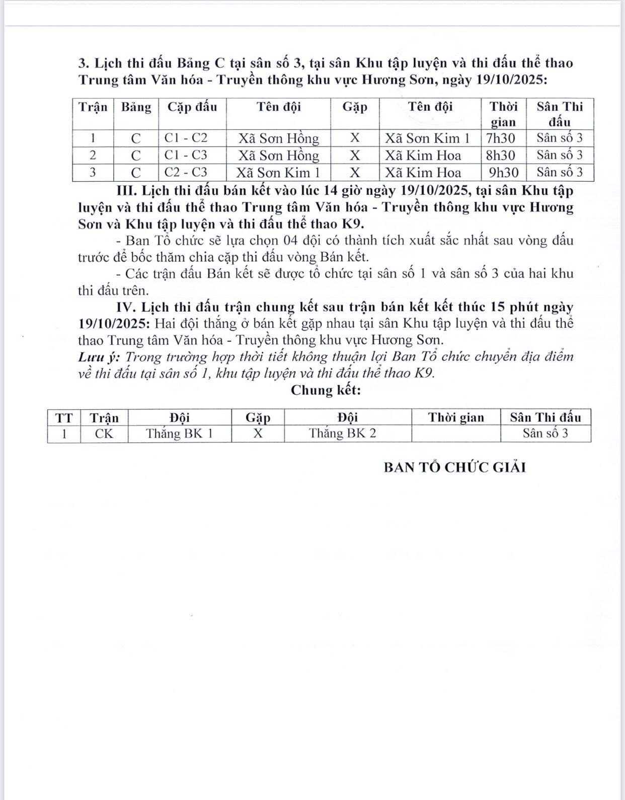 Thời gian: 7h30 phút ngày 19/10/2025 (Chủ Nhật).