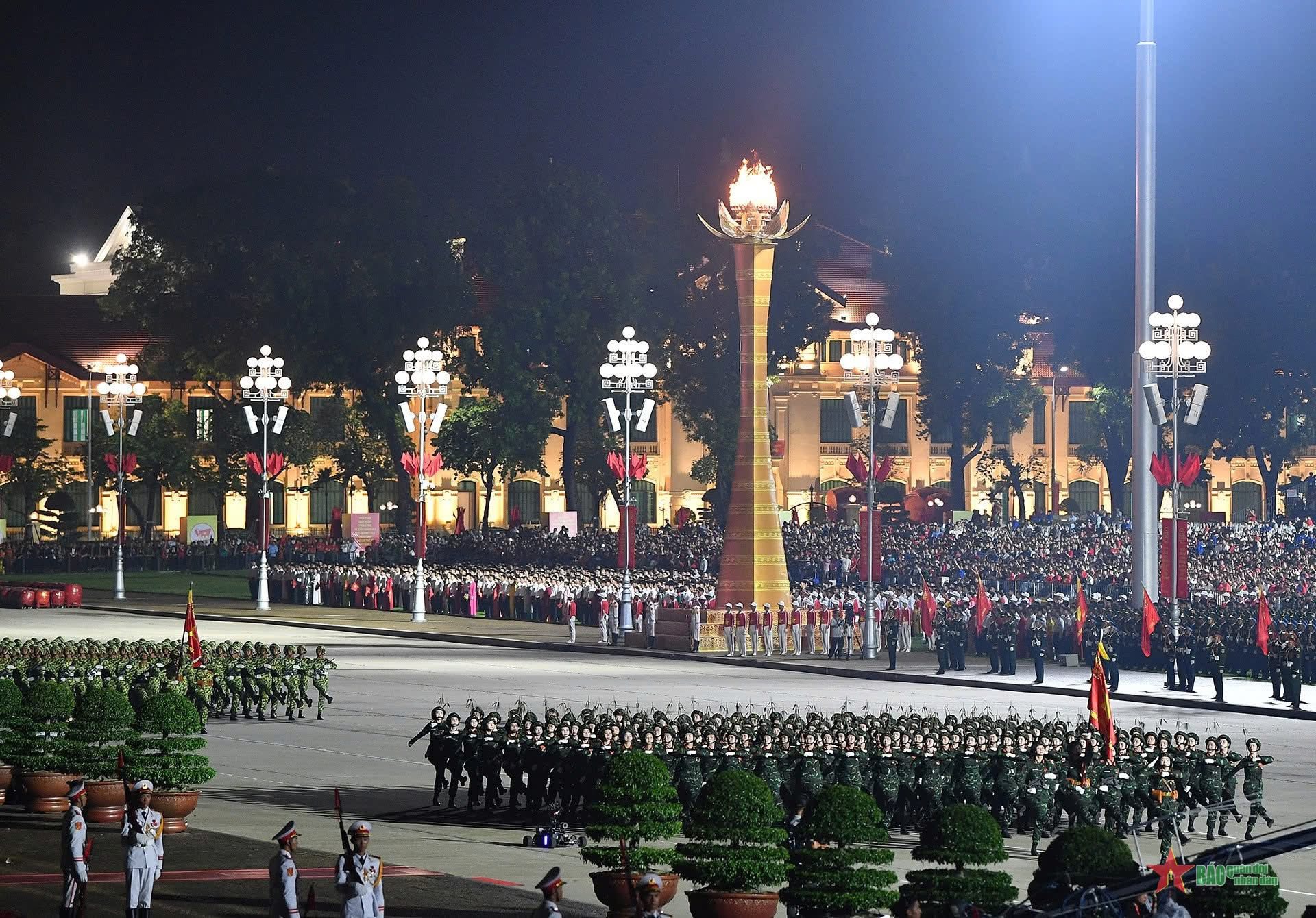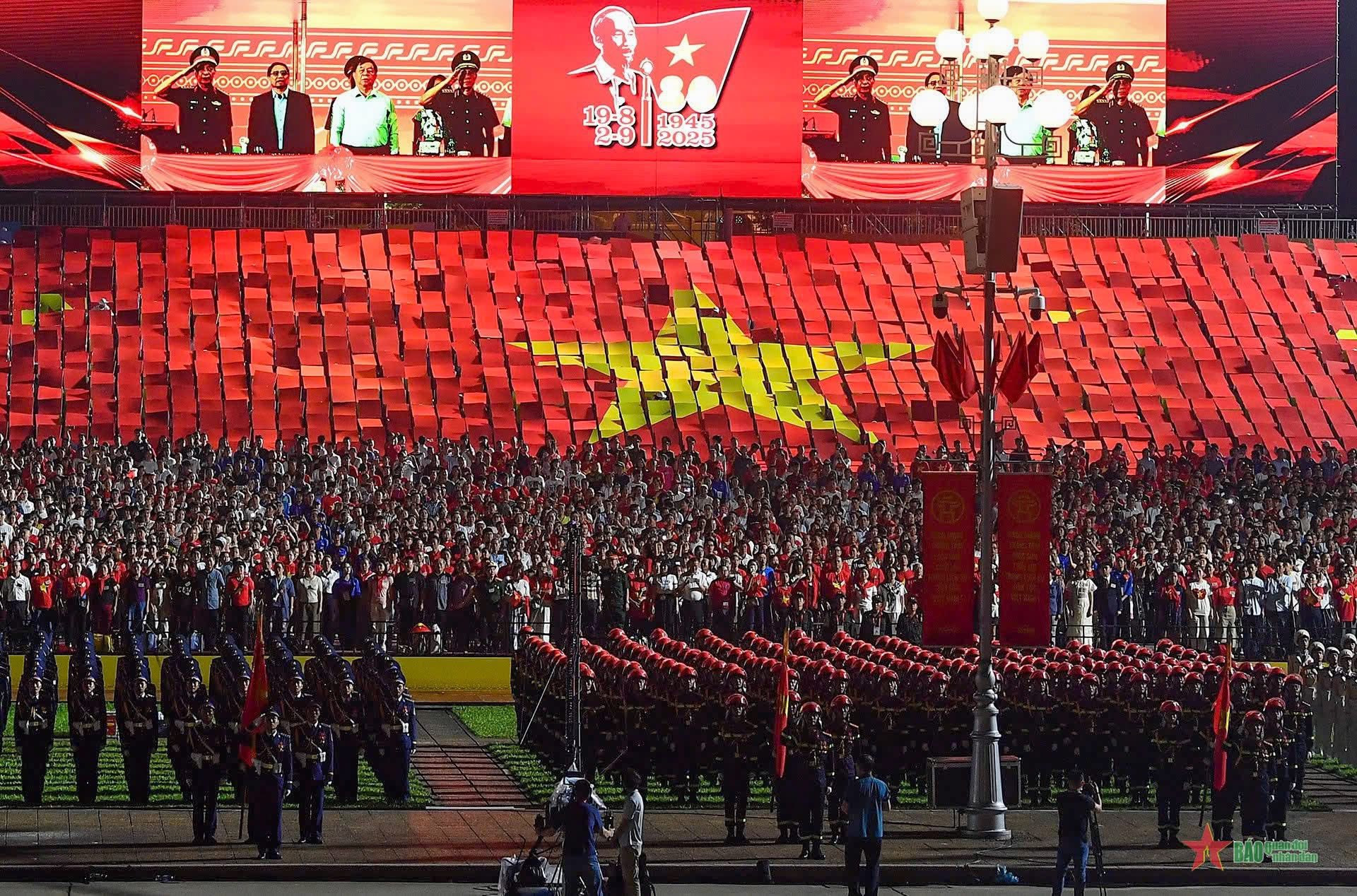 Tiếng trống, tiếng kèn rộn rã hòa cùng tiếng vỗ tay vang dội của quần chúng nhân dân tạo nên một khúc ca sục sôi, tái hiện truyền thống vẻ vang của dân tộc suốt chặng đường 80 năm xây dựng và bảo vệ Tổ quốc. Những bước chân mạnh mẽ của lực lượng vũ trang hôm nay không chỉ thể hiện sức mạnh của quân đội cách mạng chính quy, hiện đại, mà còn khẳng định ý chí kiên cường, khát vọng của dân tộc Việt Nam trong kỷ nguyên mới - Kỷ nguyên vươn mình mạnh mẽ của dân tộc. Tất cả đã tạo nên một bản hùng ca - hòa chung một niềm tin vững chắc: Đất nước hôm nay vững vàng hơn bao giờ hết, nhân dân Việt Nam đang cùng nhau viết tiếp trang sử vàng son.