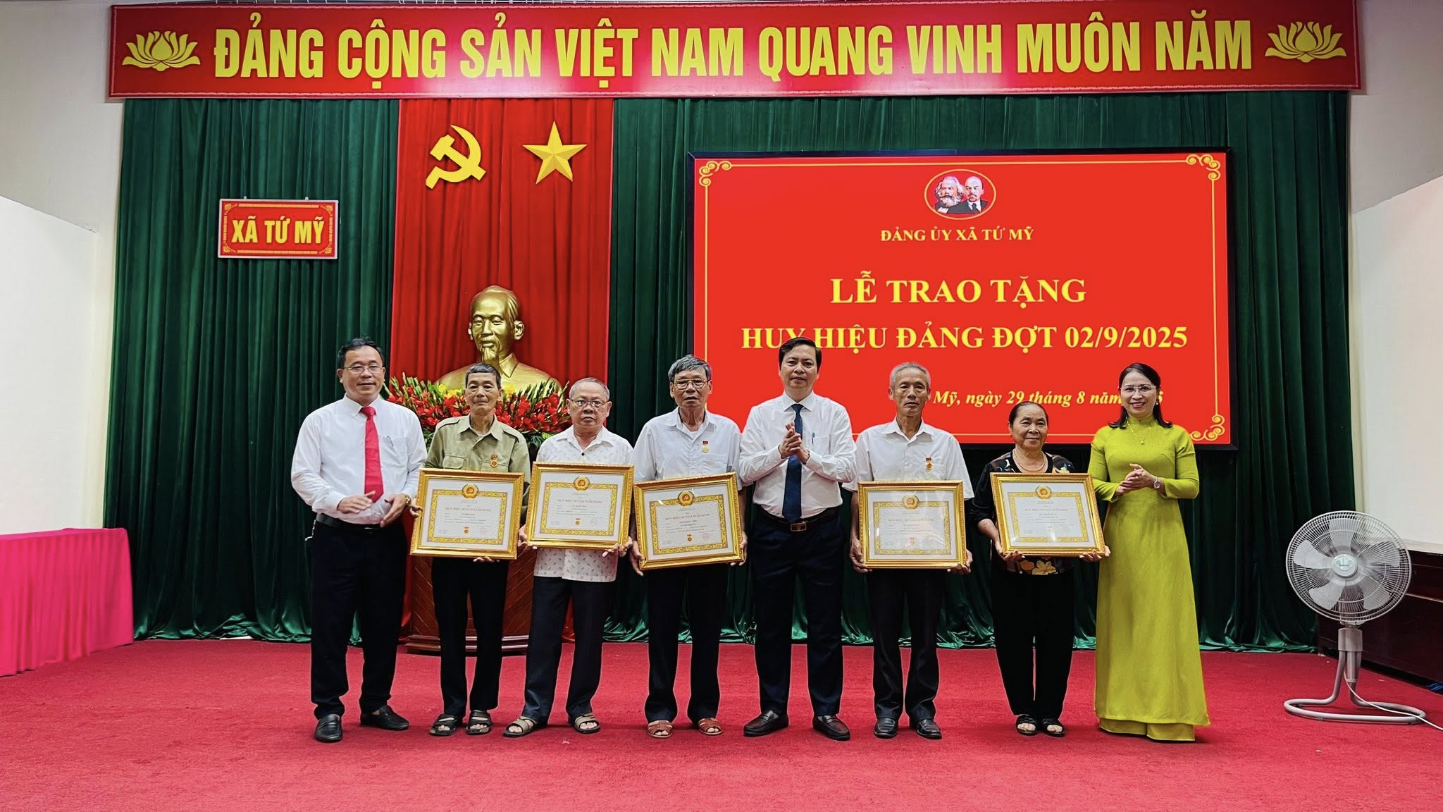 Tại buổi Lễ thừa ủy quyền của Ban Thường vụ Tỉnh ủy, lãnh đạo Đảng ủy xã Tứ Mỹ đã trao Huy hiệu 60 năm tuổi đảng cho 10 đồng chí, 55 năm tuổi đảng cho 3 đồng chí, 50 năm tuổi đảng cho 6 đồng chí, 45 năm tuổi đảng cho 12 đồng chí, 40 năm tuổi đảng cho 5 đồng chí và 30 tuổi đảng cho 6 đồng chí. Đây là phần thưởng cao quý, ghi nhận quá trình rèn luyện, cống hiến, phấn đấu bền bỉ của các đồng chí cho sự nghiệp cách mạng của Đảng và sự phát triển của quê hương, đất nước.