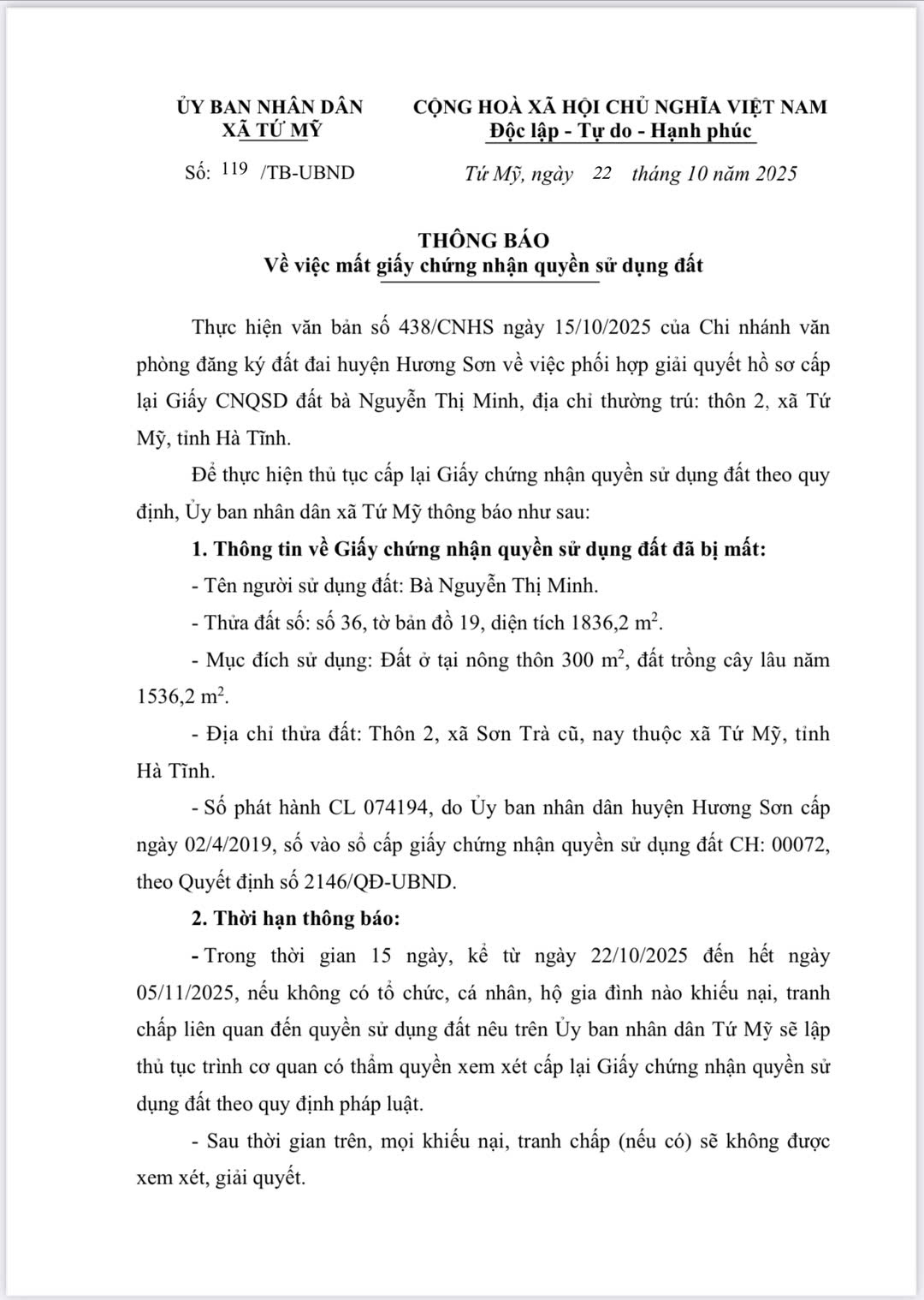 Thông báo mất giấy chứng nhận quyến sử dụng đấtTrần Văn Triều23/10/2025A -A+Trần Văn Triều23/10/2025A -A+ File đính kèmThong-bao-mat-giay-chung-nhan-quyen-su-dung-dat-ba-Nguyen-Thi-Minh_luanpbtumy-22-10-2025_14h21p52(22.10.2025_15h58p34)_signed.pdf