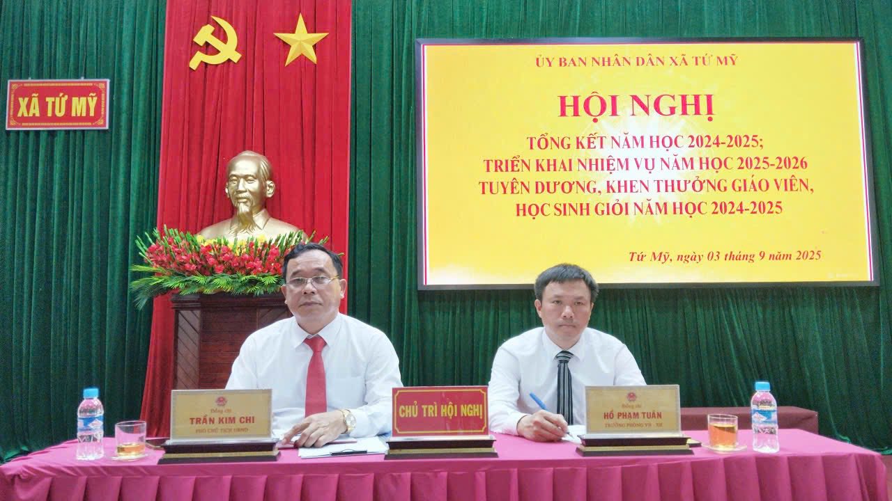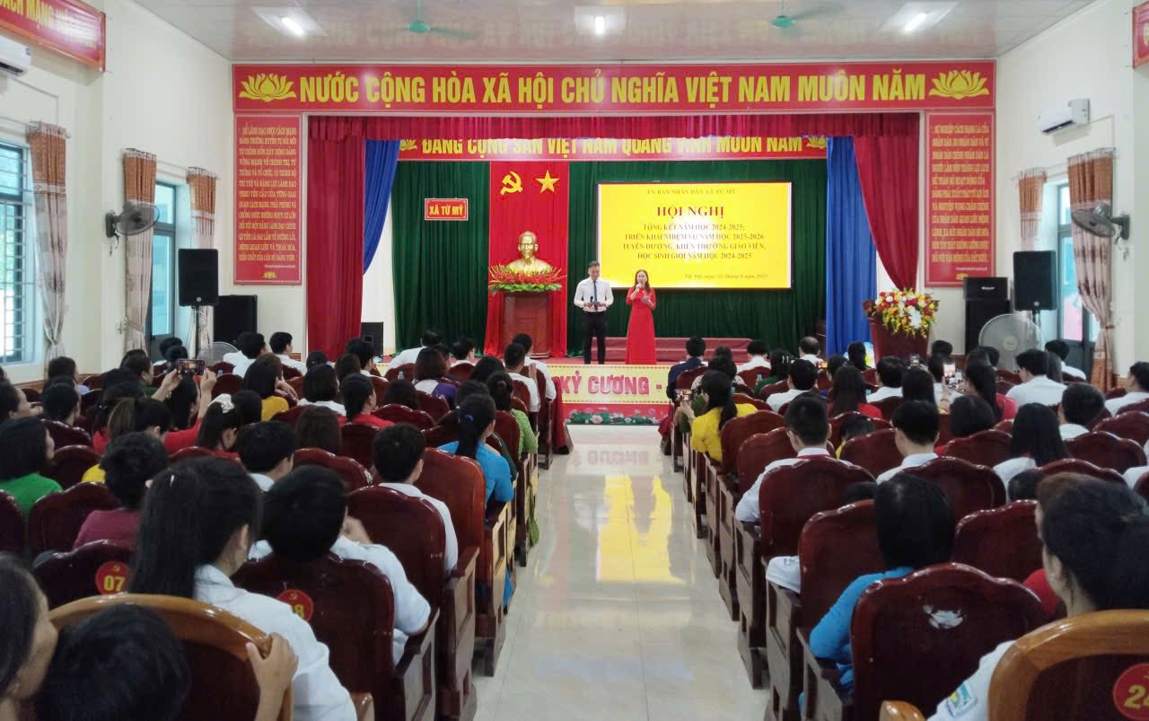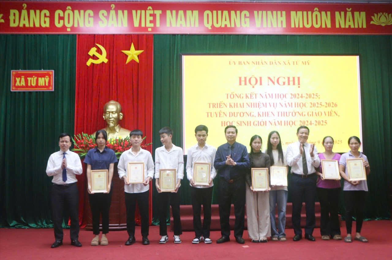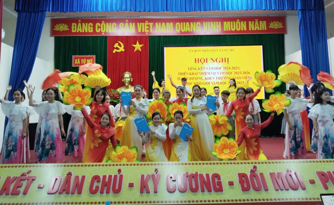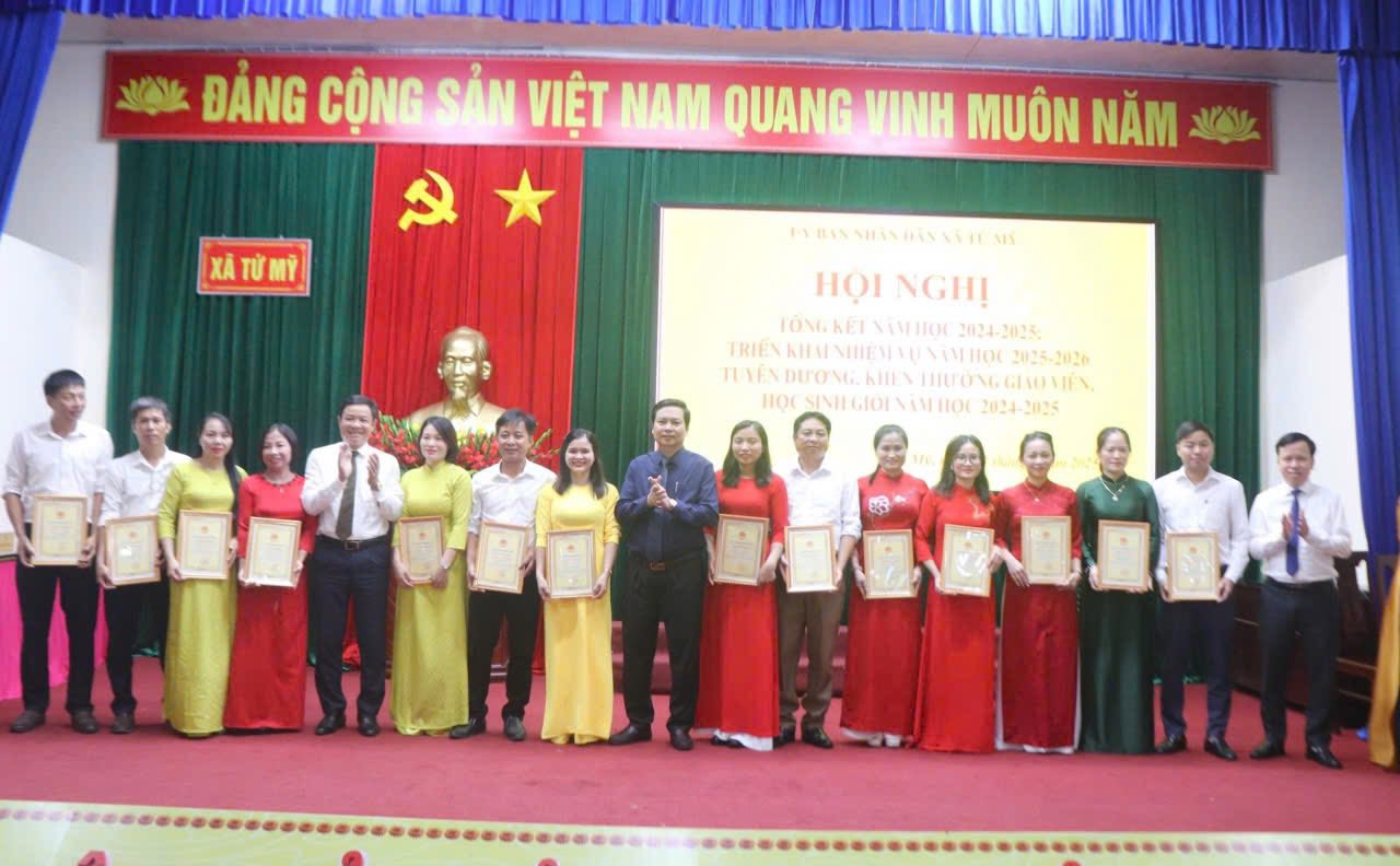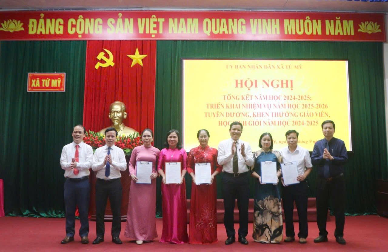 Tại hội nghị, xã Tứ Mỹ đã trao Quyết định bổ nhiệm lại các chức danh Hiệu trưởng, Phó Hiệu trưởng cho các cán bộ quản lý; tuyên dương 14 giáo viên đạt danh hiệu giáo viên giỏi tỉnh; giáo viên đạt giải cuộc thi ATGT cấp Quốc gia; giáo viên có thành tích trong bồi dưỡng học sinh vào lớp 10, học sinh giỏi tỉnh lớp 9 và hơn 60 em học sinh đạt điểm cao tuyển sinh Đại học và học sinh giỏi các cấp.
